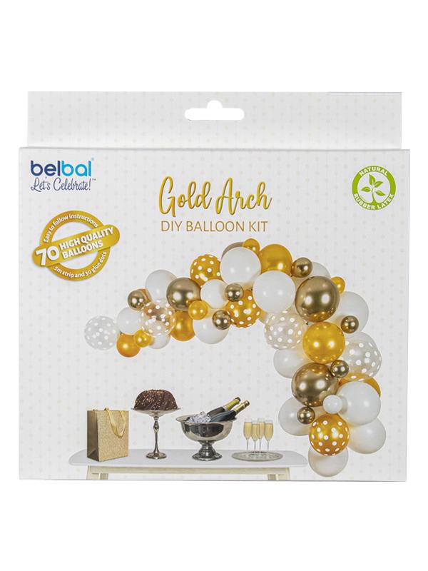 Napravi luk od balona! Uzmi balonski set za samostalnu izradu girlande iz balona (70) sa vrpcom duljine 5 metara. Super kvalitetni baloni zlatni, glossy zlatni, bijeli i prozirni sa prigodnim dezenom za savršenu dekoraciju prostora ili pozadine za fotografiranje. Set "Uradi sam girlandu iz balona" sadrži upute za izradu kompletne balonske dekoracije na kutiji.